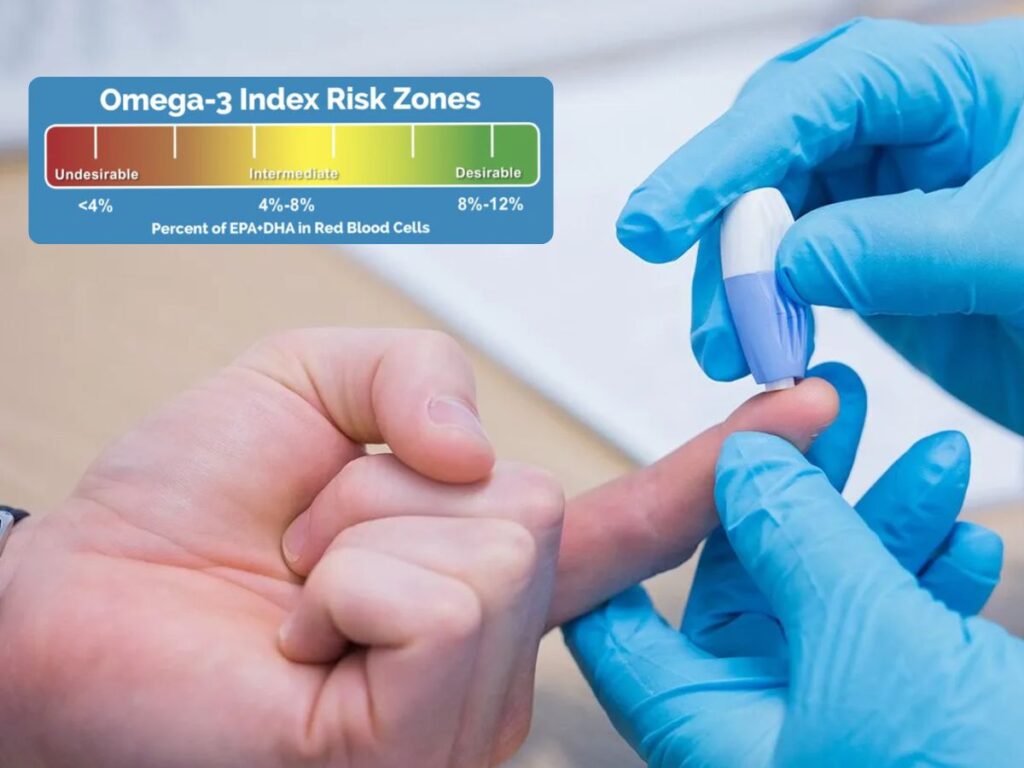 The Omega-3 Index is a simple finger-stick blood test that quantifies the levels of two essential omega-3 fatty acids—EPA (eicosapentaenoic acid) and DHA (docosahexaenoic acid)—in your red blood cells.